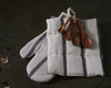 Oven Mitt, Pot Holder with 4 Spice Spoons Set - Slub Stripes - 100% cotton -Ivory / Black