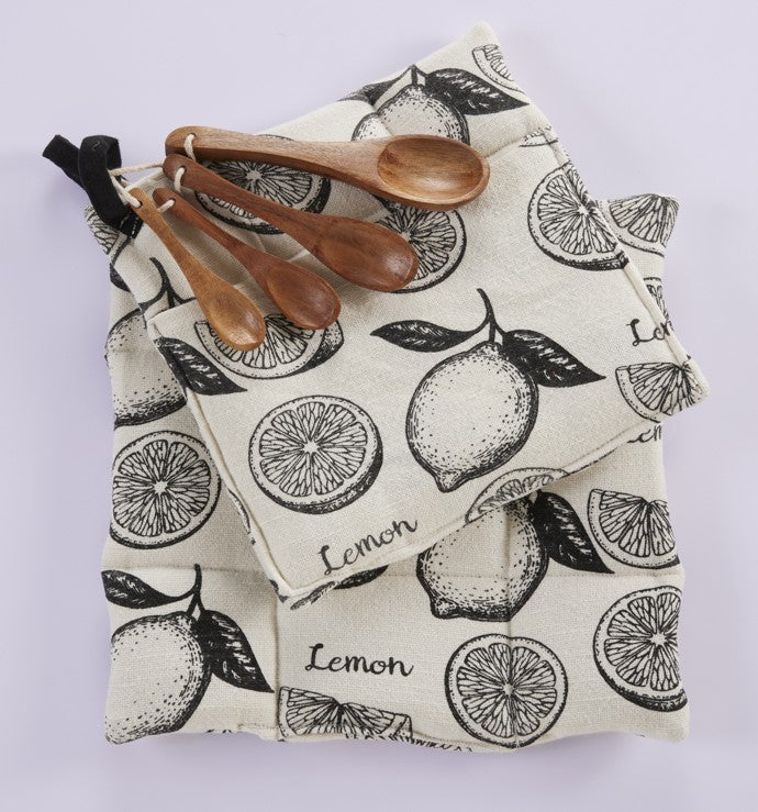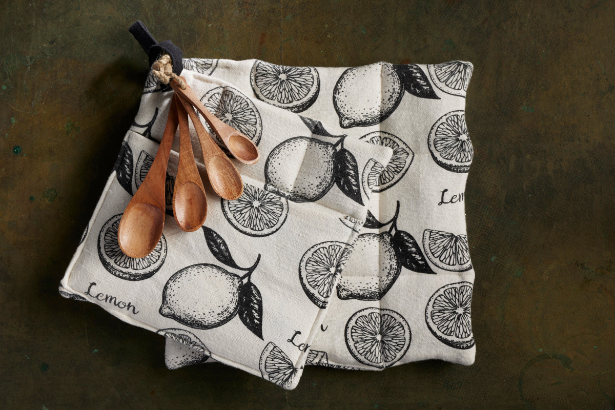 PotHolders with Spice Spoons - Lemon - Ivory / Black