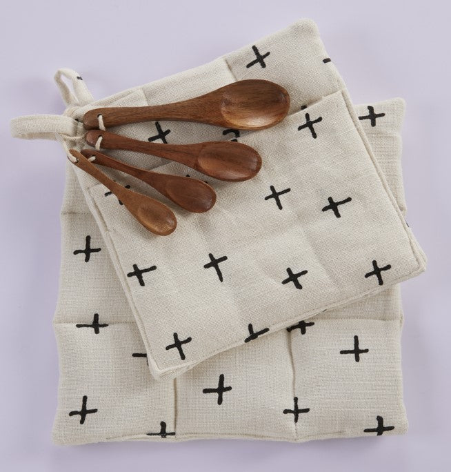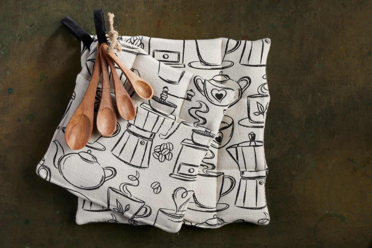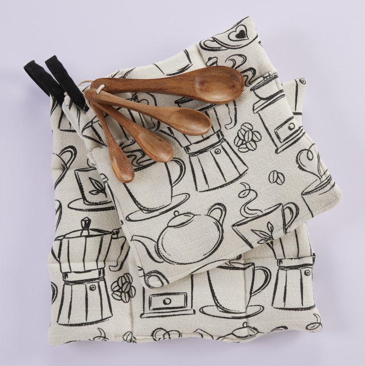 Pot Holders with Spice Spoons - Coffee - Ivory / Black