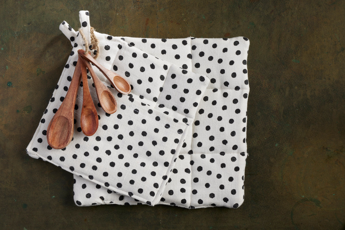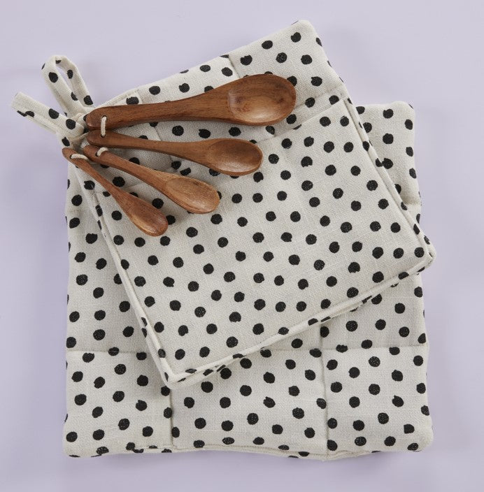 Pot Holders with Spice Spoons - Polkadots - Ivory / Black
