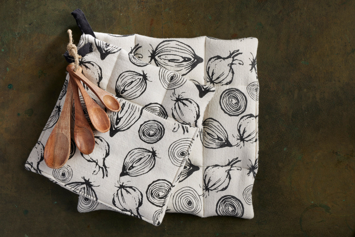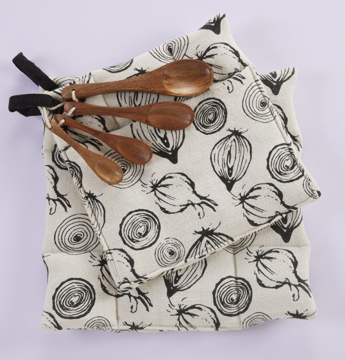 Pot Holders with Spice Spoons - Onion - Ivory / Black