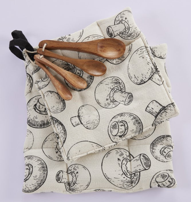 PotHolders with Spice Spoons - Mushroom - Ivory / Black