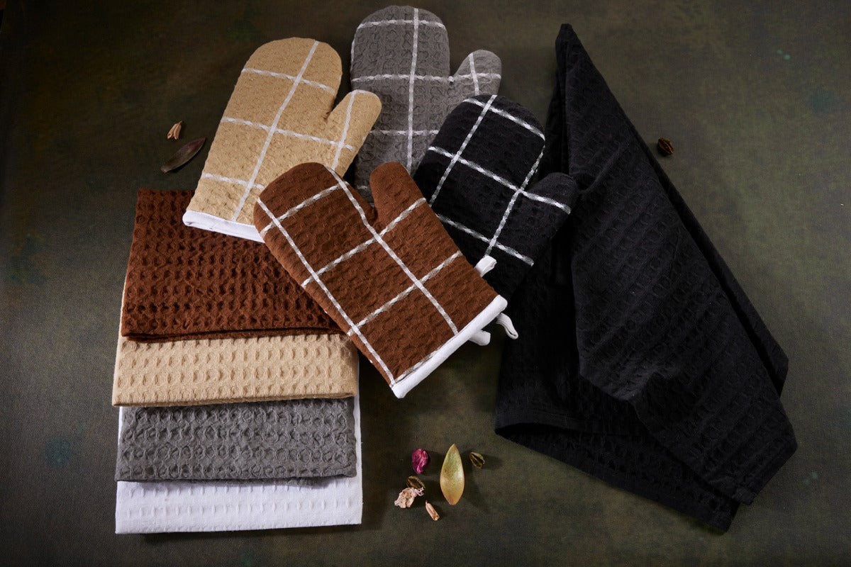 Waffle Weave Kitchen Essentials kit - Kitchen Towels & Oven Mitts Combo Set