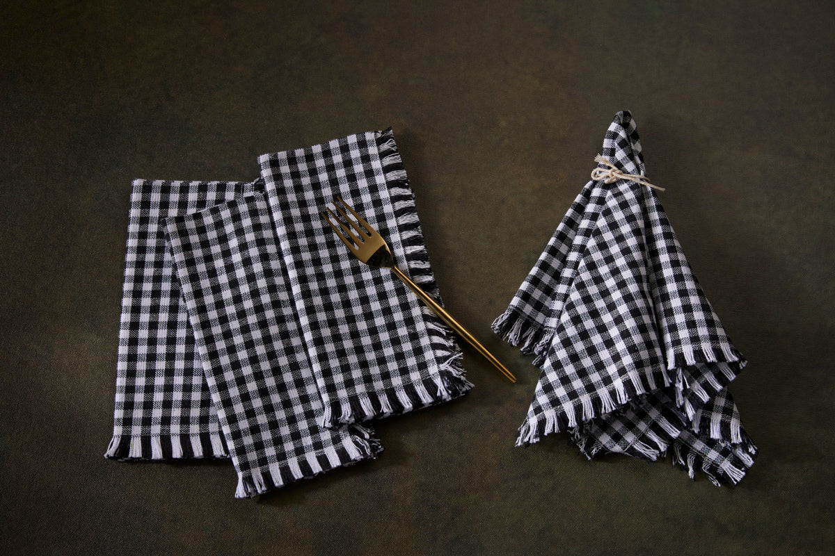 Buffalo Checks Napkins - Set of 4 - 100% Cotton - Black / White