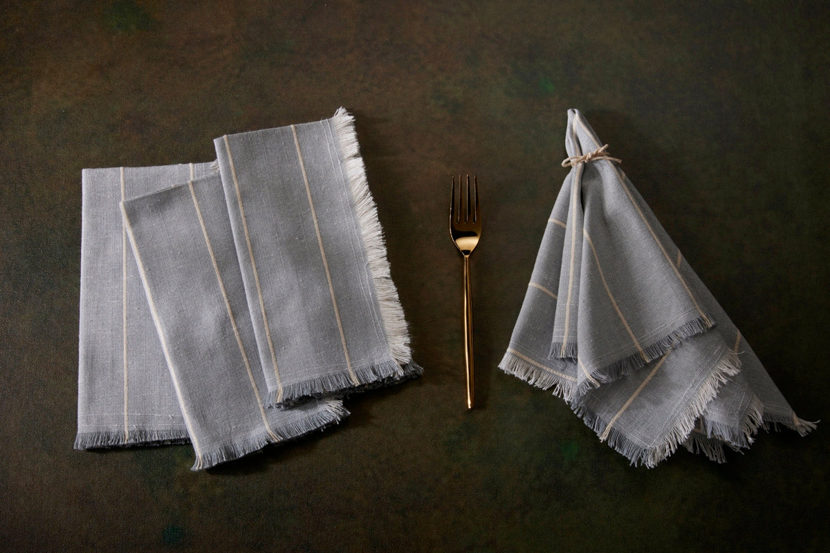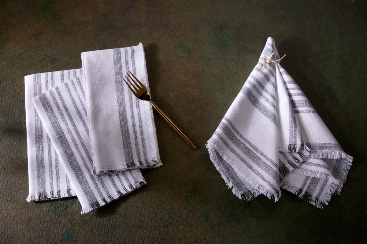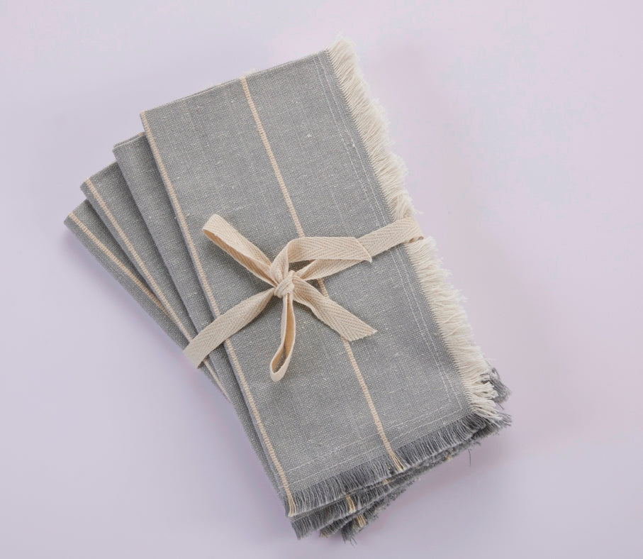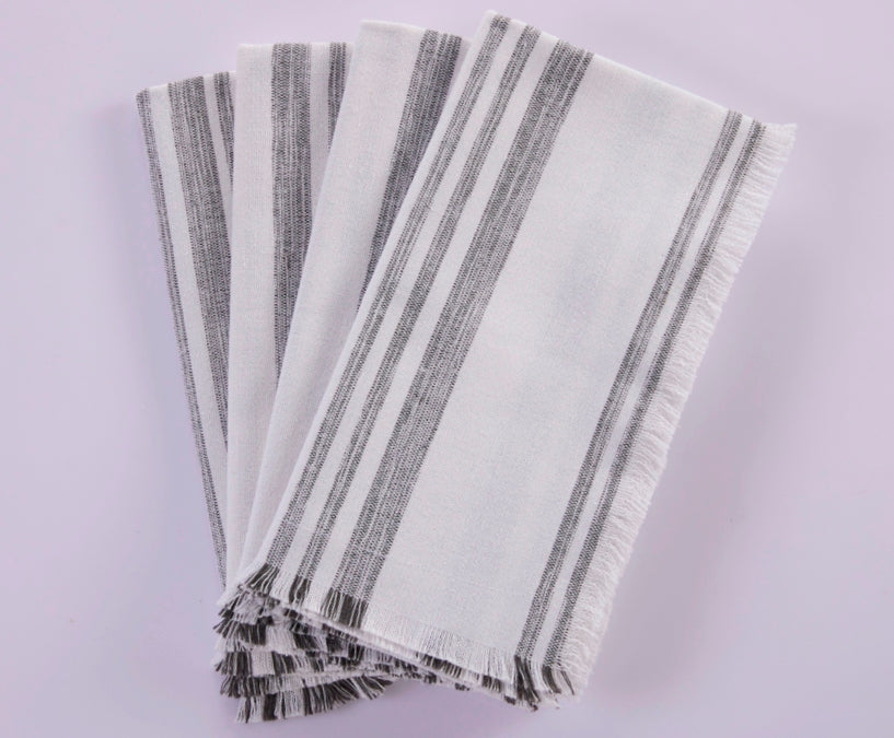 Stripe Fringe Napkins - Set of 4- 100% Cotton - Grey
