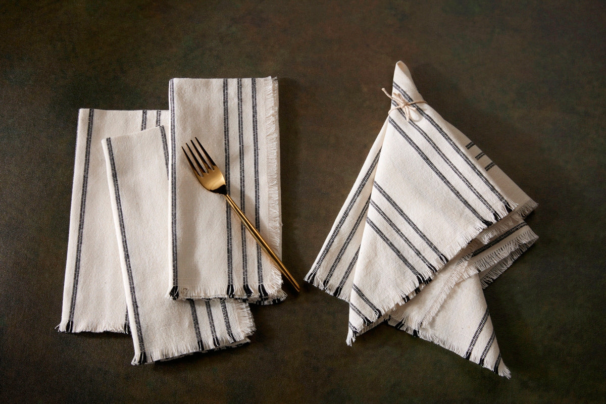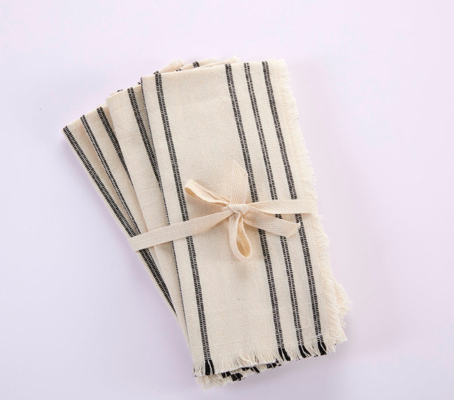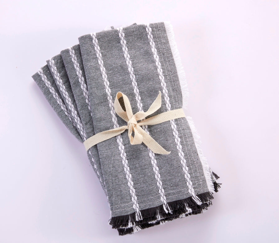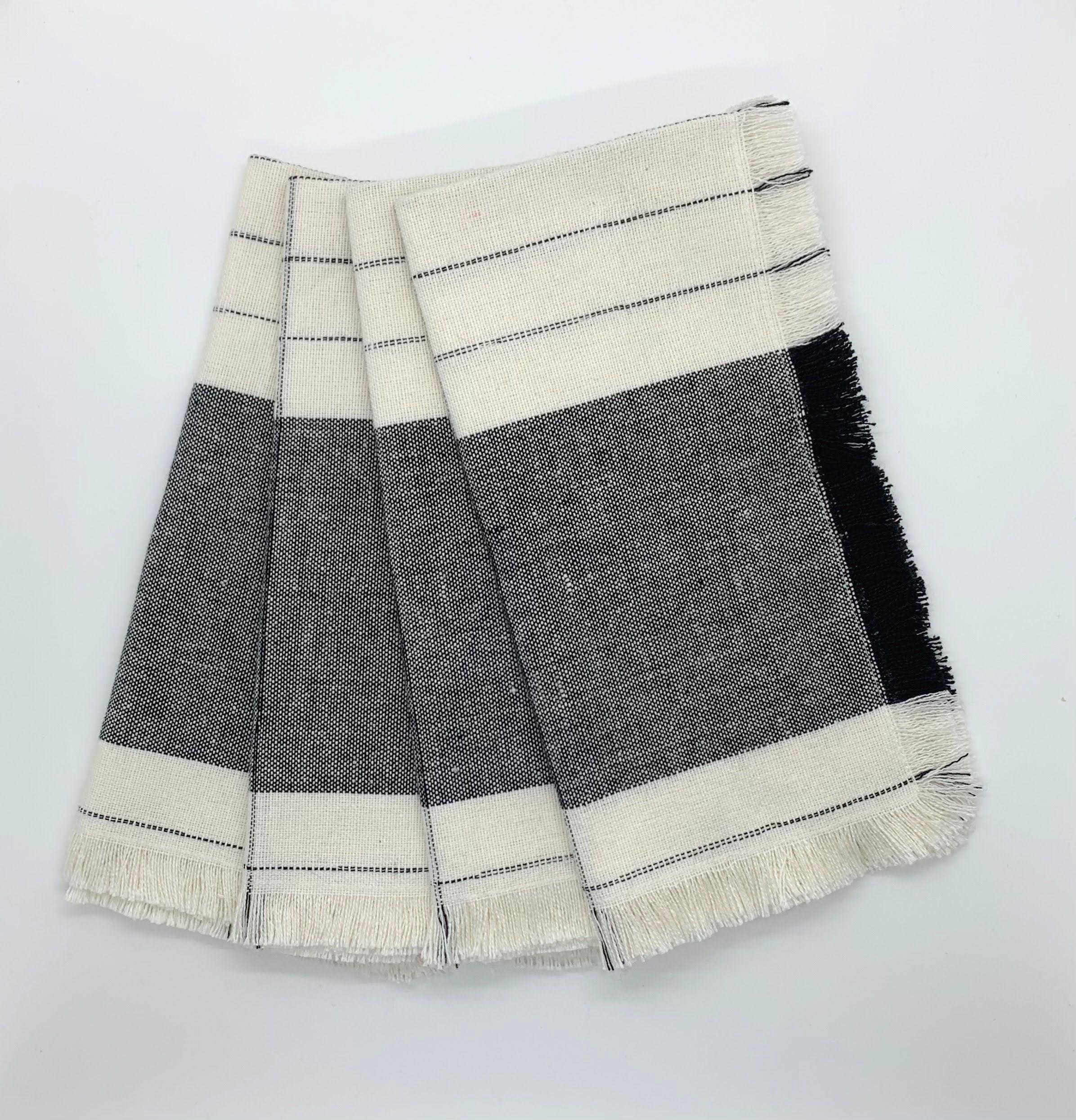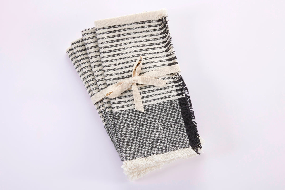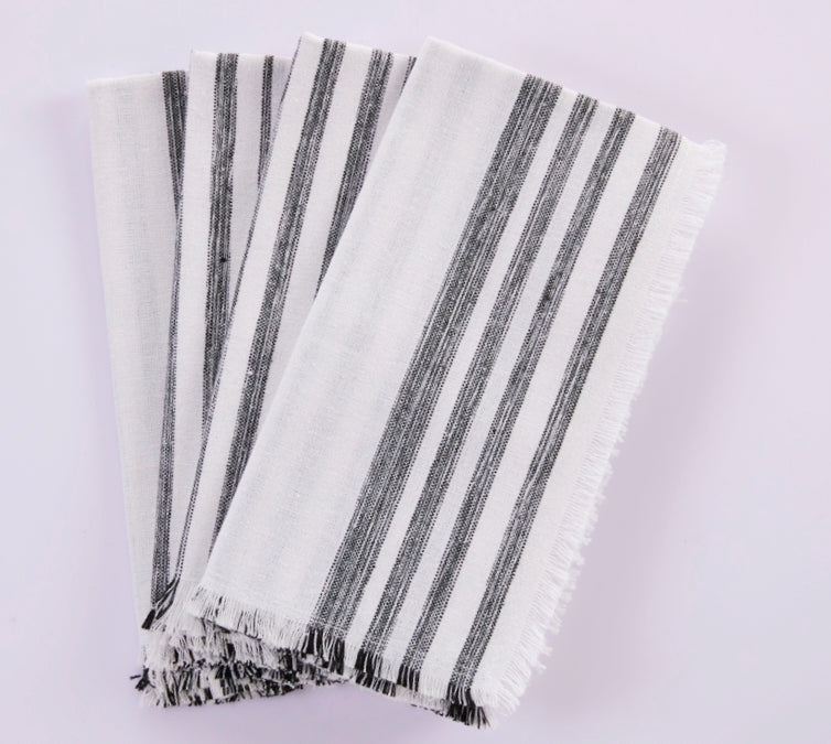 Stripe Fringe Napkins - Set of 4 - 100% Cotton - Black