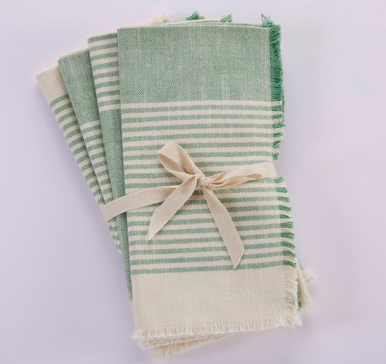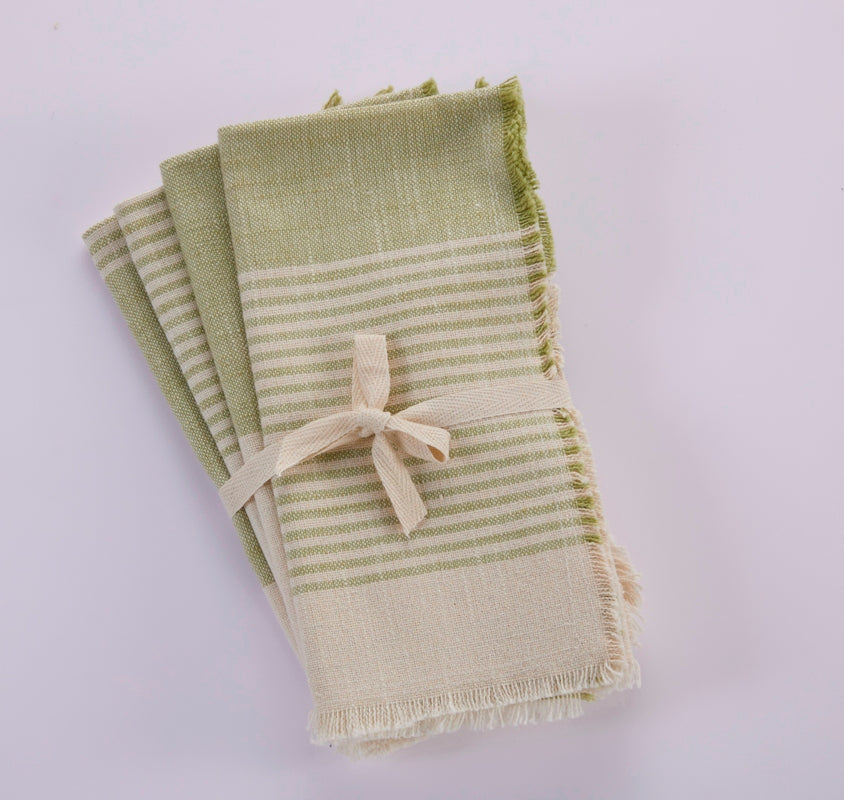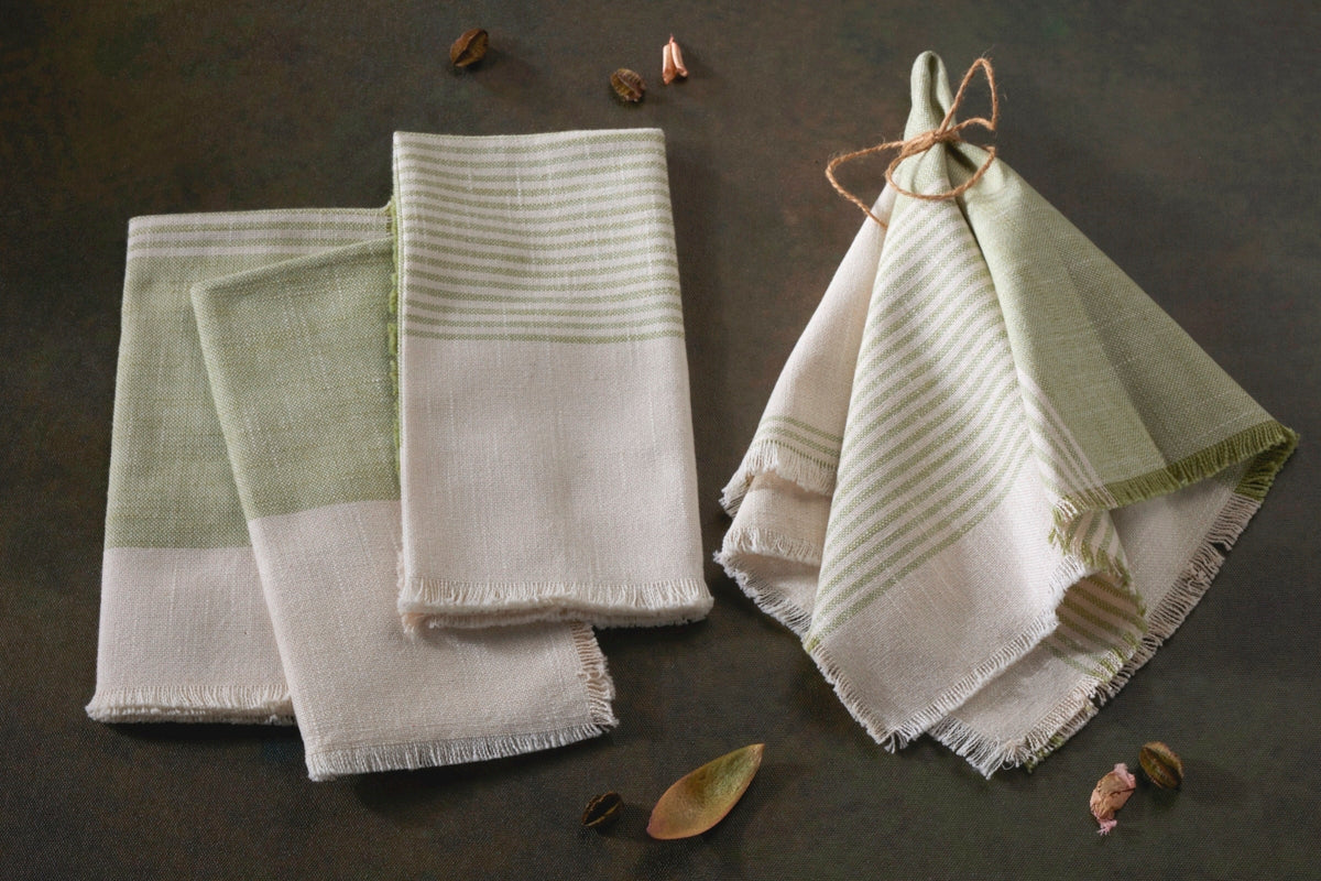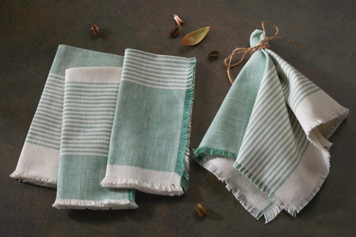 Cuisine Stripe Dinner Napkins - Set Of 4- 100% Cotton - Green