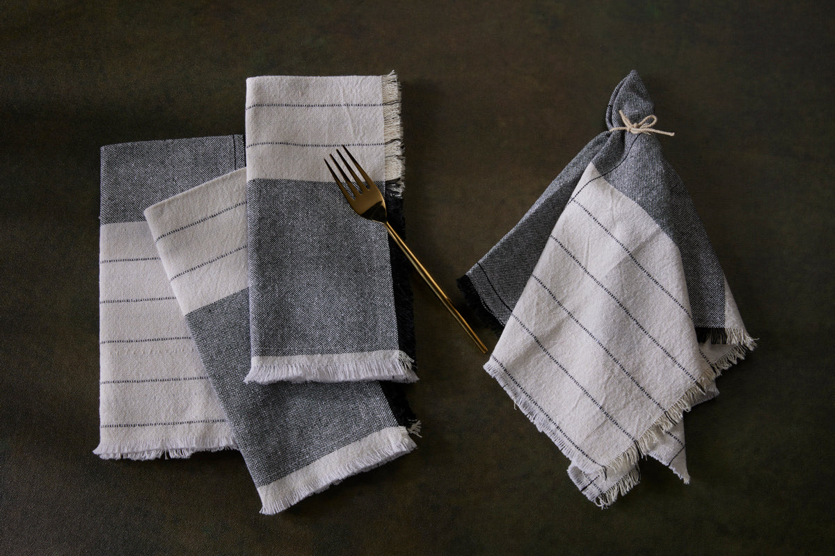 Slub Dobby Napkins - Set of 4- 100% Cotton - Ivory/Black