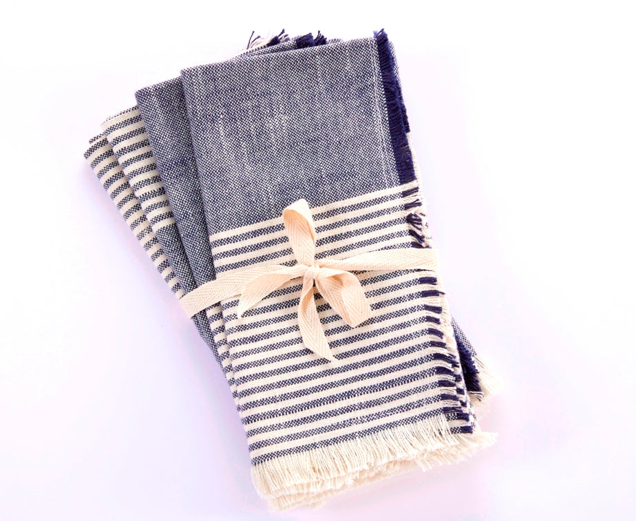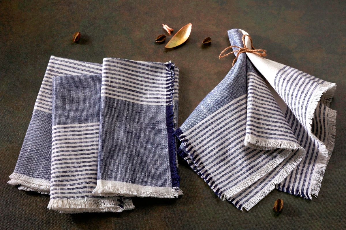 Cuisine Stripe Dinner Napkins - Set Of 4 - 100% Cotton - Navy
